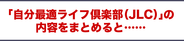 今回、ご案内している「自分最適ライフ倶楽部(JLC)」で、あなたが得られるものは、下記になります。