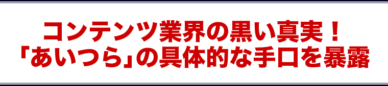 なぜなら、コンテンツ業界というのは、他の業界では考えられないような「黒いこと」を平気でおこなっている人たちがいるからです。