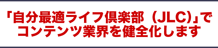 私は、「自分最適ライフ倶楽部(JLC)」をコンテンツ業界のサン・セバスティアンにしたいと考えています。そのために、あなたに「自分最適ライフ倶楽部(JLC)」参加してほしいと思っています。