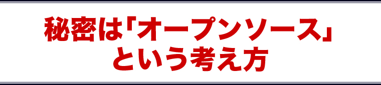 オープンソースとは、もともとITの世界の考え方で、何かを開発したら、情報をオープンにして、「みんなで改善していこう」というものです。