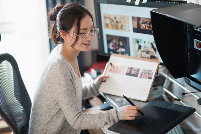 イラスト作成などパソコンで制作する仕事です。